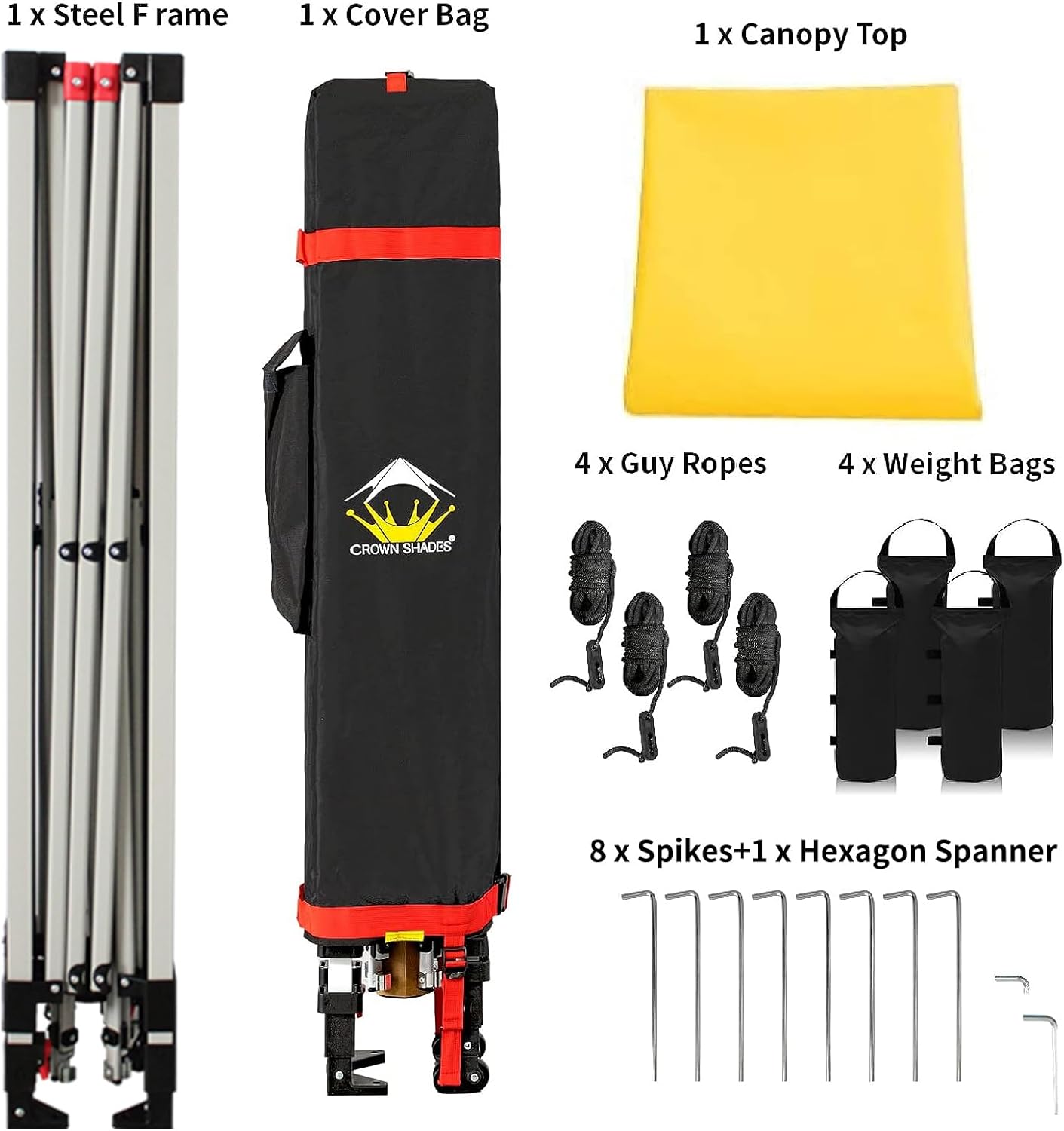 For added convenience, the Crown Shades Pop Up Canopy comes with a STO-N-Go Cover Bag for easy transport and storage. The included 4 Sand Bags ensure stability in windy conditions, keeping your canopy secure and steady.